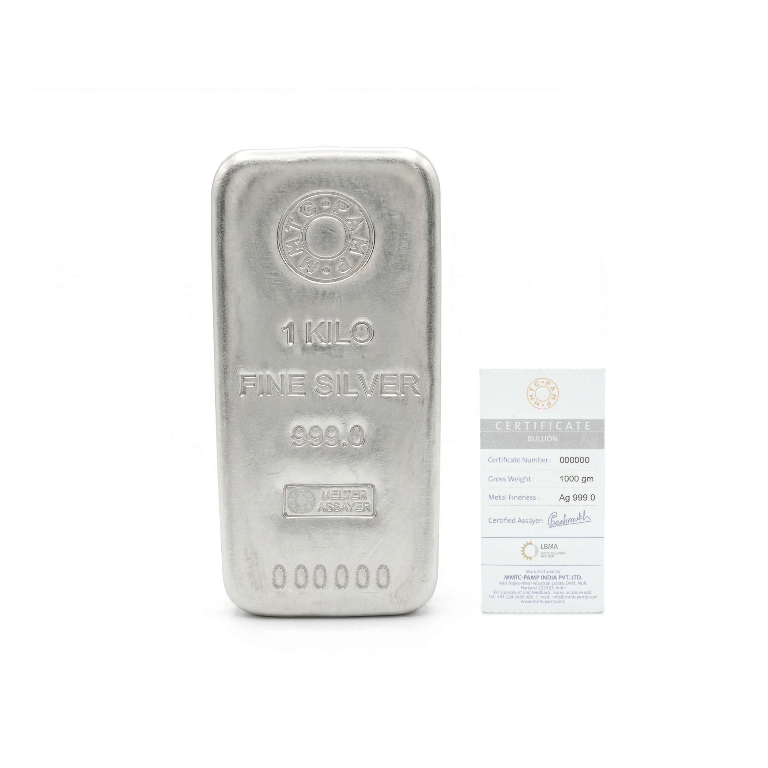 1kg Fine Silver Bar 999.0 MMTC PAMP