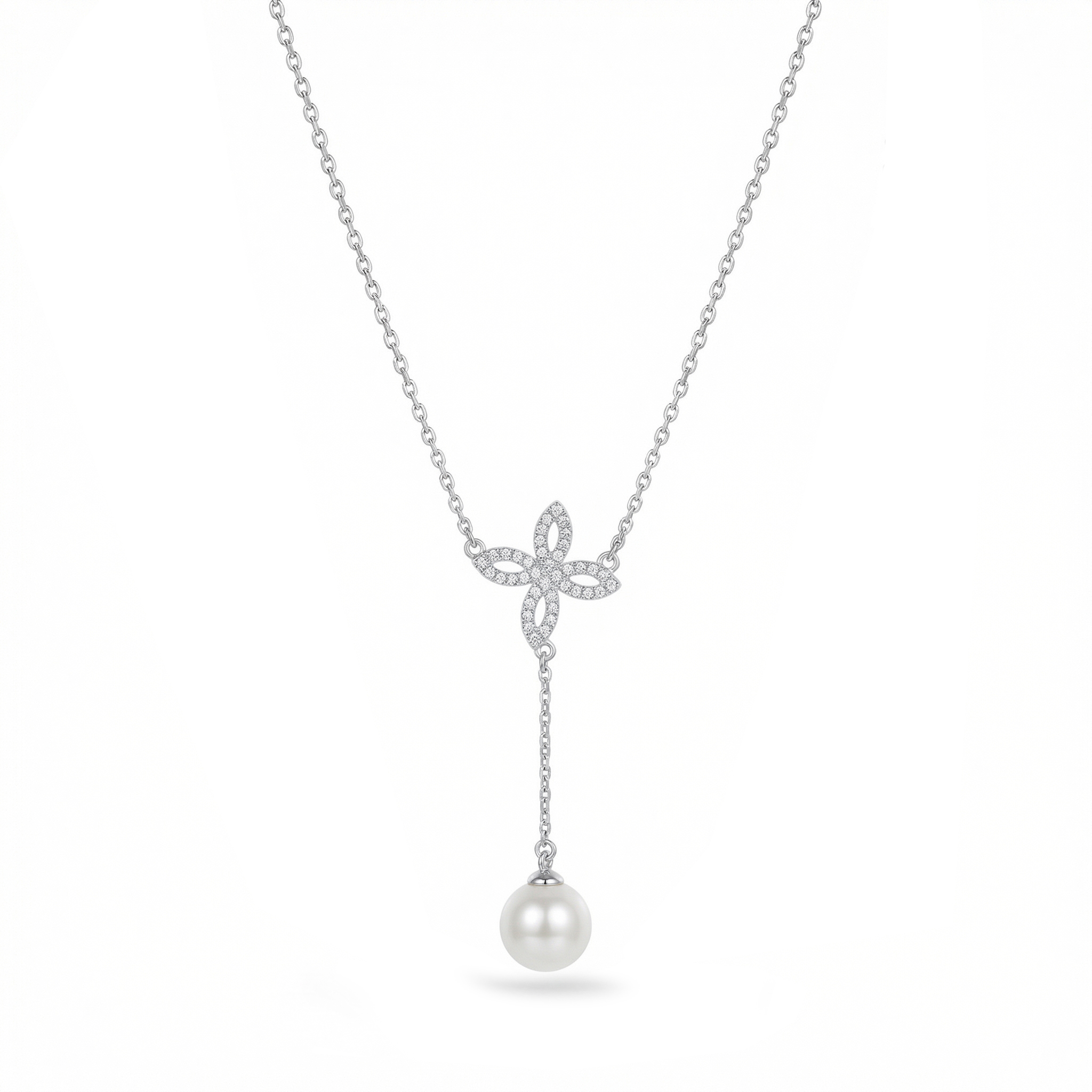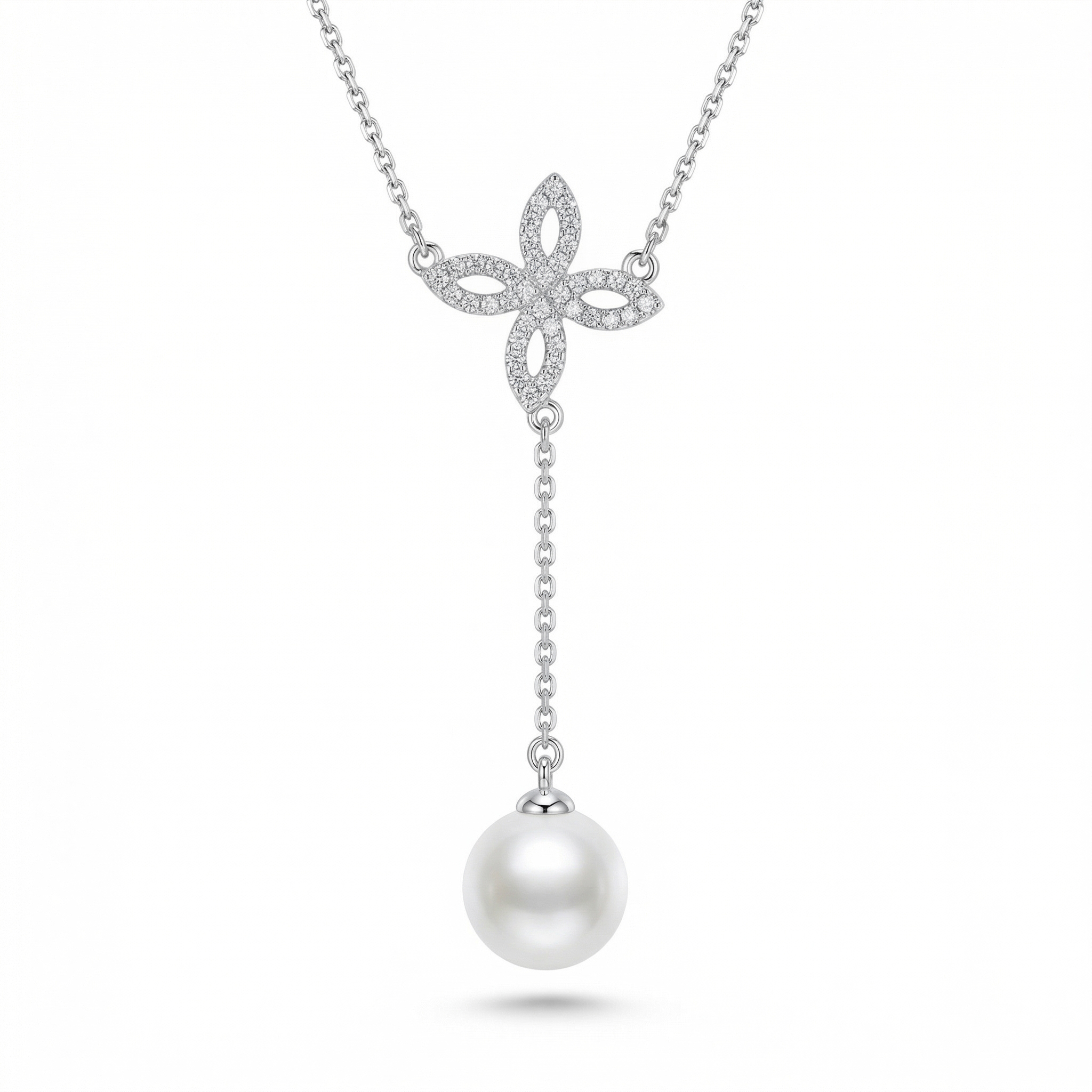 18K White Gold Necklace containing Natural Diamonds & Synthetic Pearl