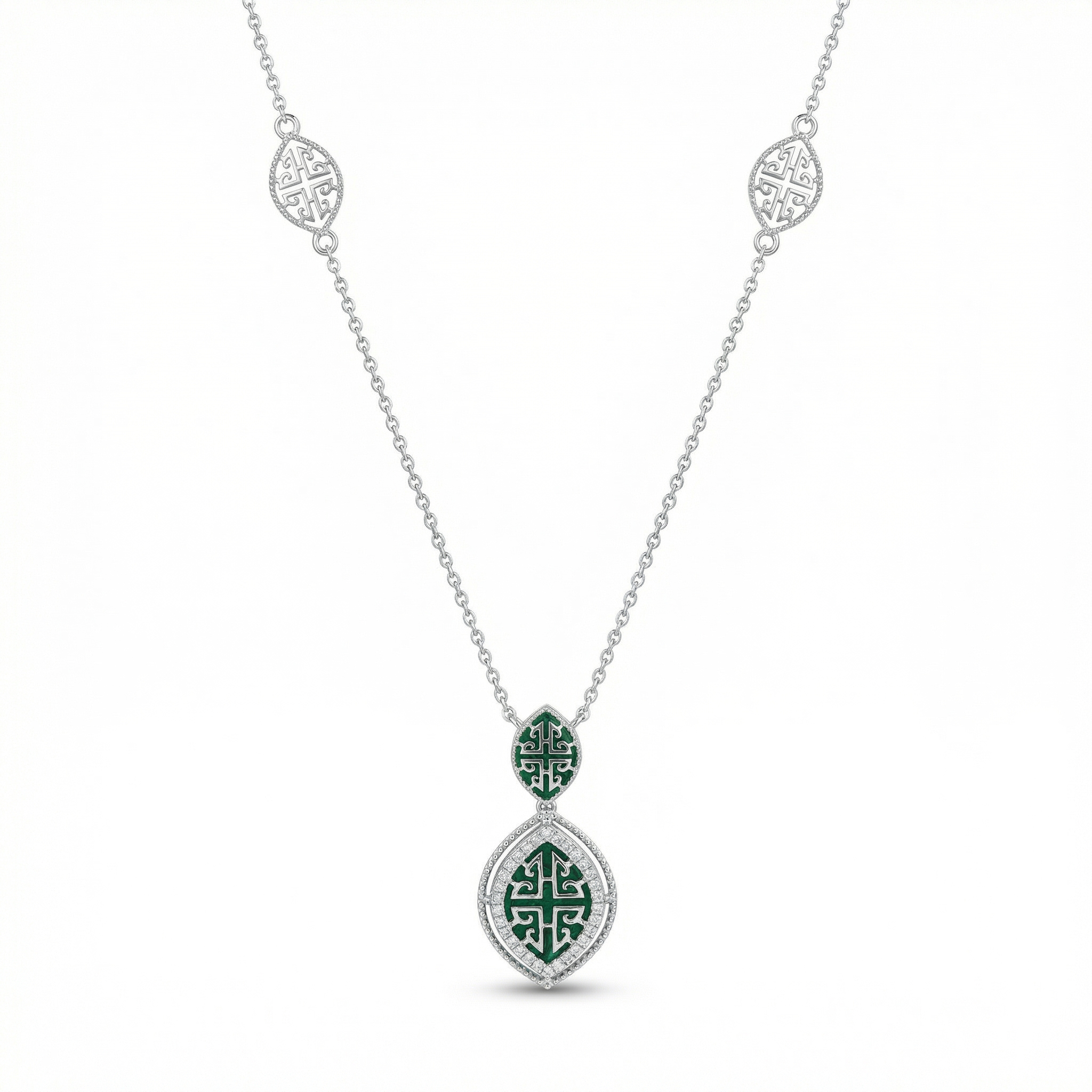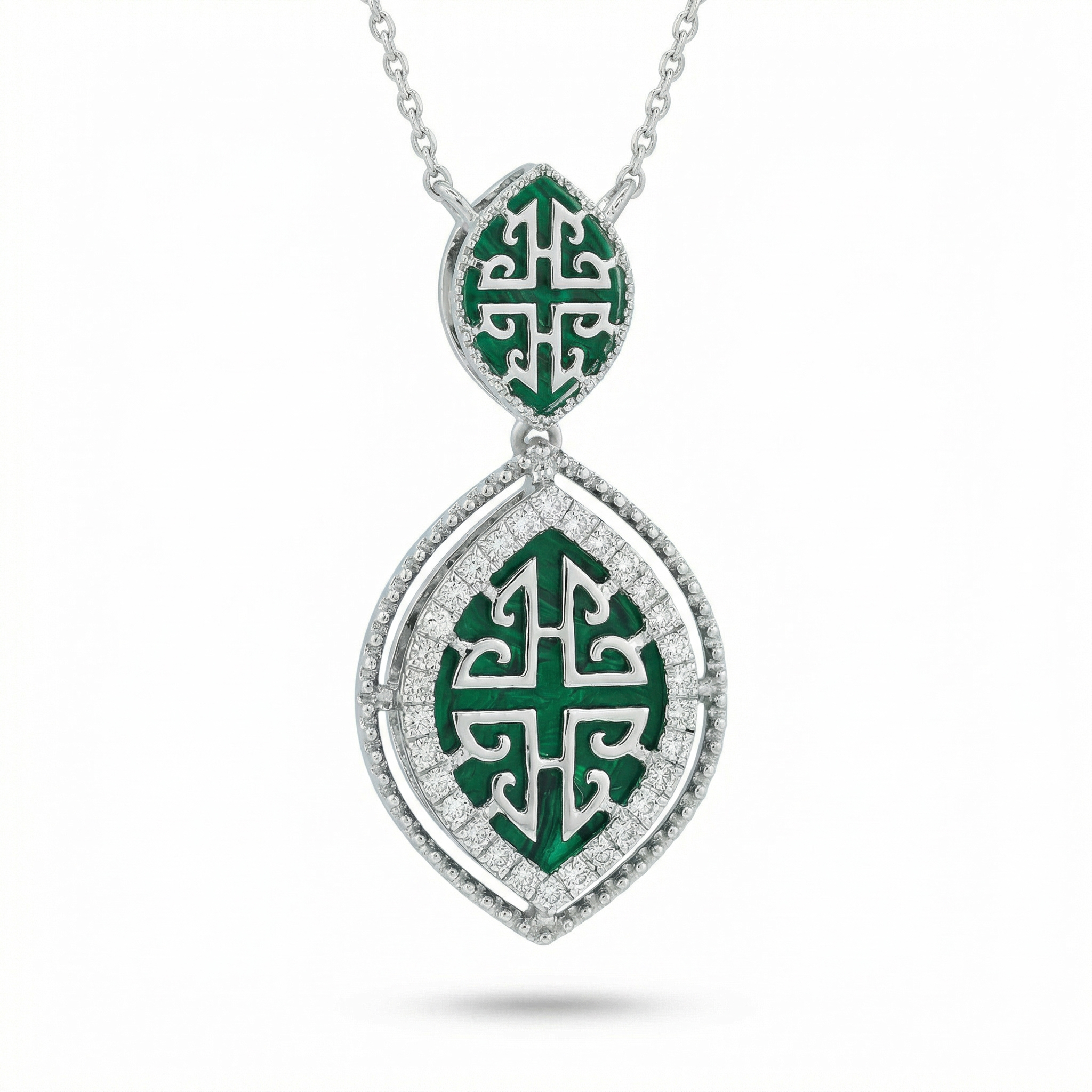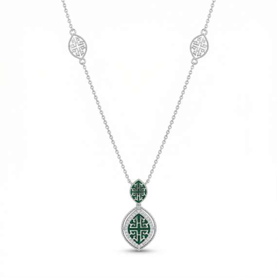 18k White Gold Necklace containing Natural Diamonds & Malachite